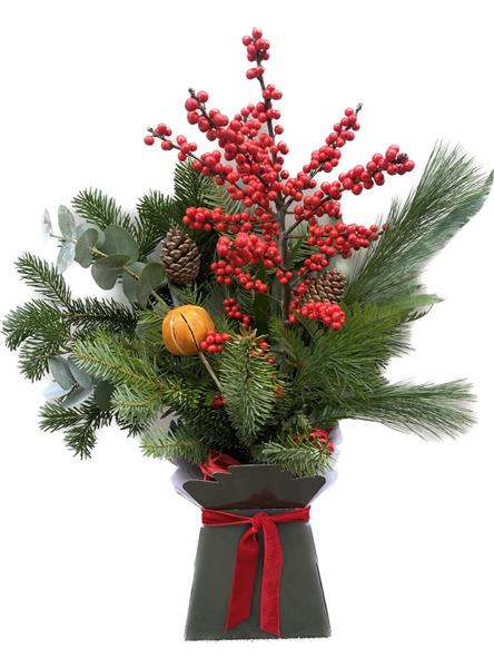 1 Stem Red Ilex , foliages and other dried fruits,cones .